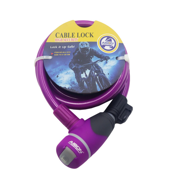 - قفل کابلی دوچرخه آیسون - سایز : 10*120 سانتی متر - طول : 120 سانتی متر - دارای 2 عدد کلید همراه - دارای در پوش محافظ روی مغزی قفل - دارای پوشش روکش PVC انعطاف پذیر - محصولی بسیار با کیفیت ،زیبا و کار آمد