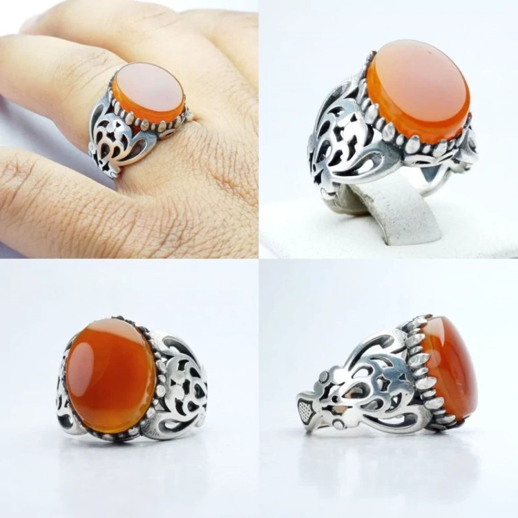 انگشتر عقیق یمنی یمن اصلی رکاب نقره طرح شبکه نقره عیار925 ارسال رایگان