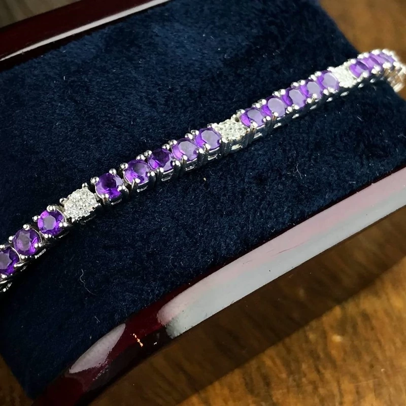 دستبندنقره فوق العاده شیک آسانسوری تمام نگین آماتیس اصلی