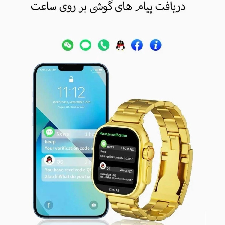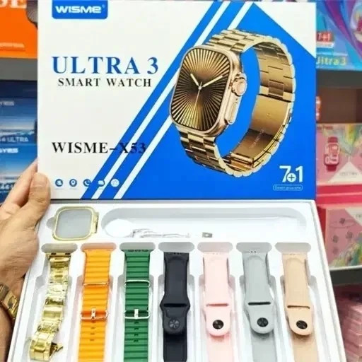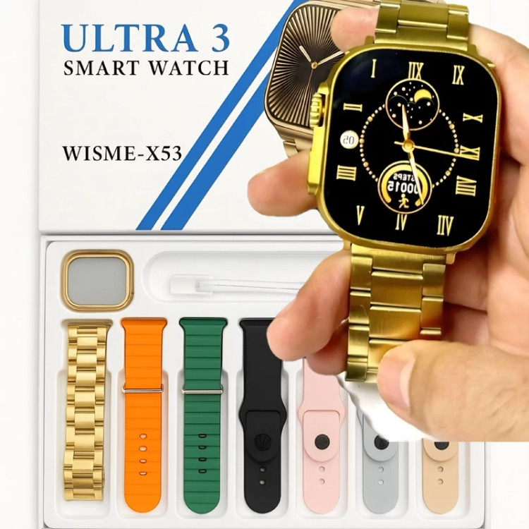 ساعت هوشمند 7بند مدل wisme X53(با بند فلزی طلایی ) سری 10 اولترا تمام صفحه 3کلید فعال فروش تک به قیمت عمده