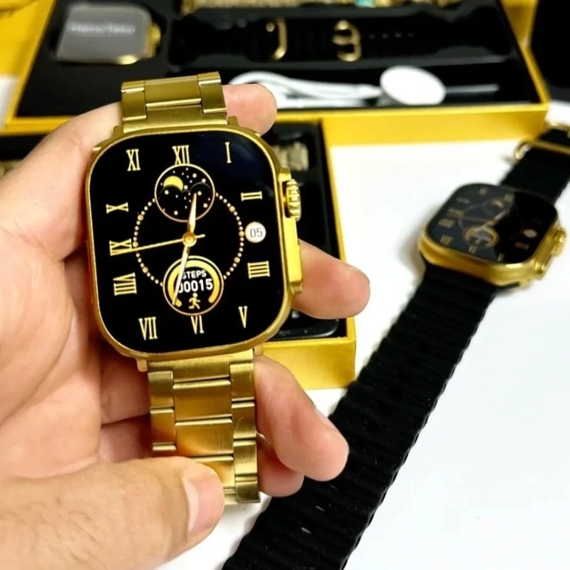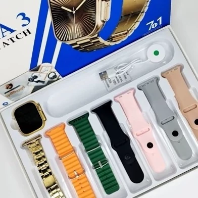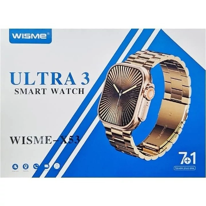 ساعت هوشمند 7بند مدل wisme X53(با بند فلزی طلایی ) سری 10 اولترا تمام صفحه 3کلید فعال فروش تک به قیمت عمده