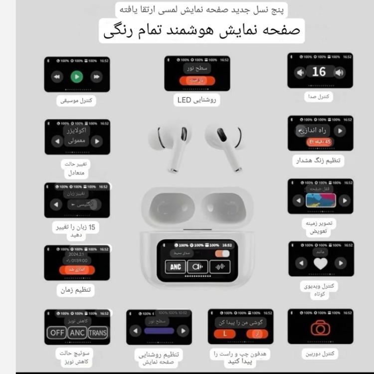ایرپاد مانیتور دار ANC ENC A9PRO لمسی گیمینگ 5 ساعت موزیک مداوم نویزکنسلینگ