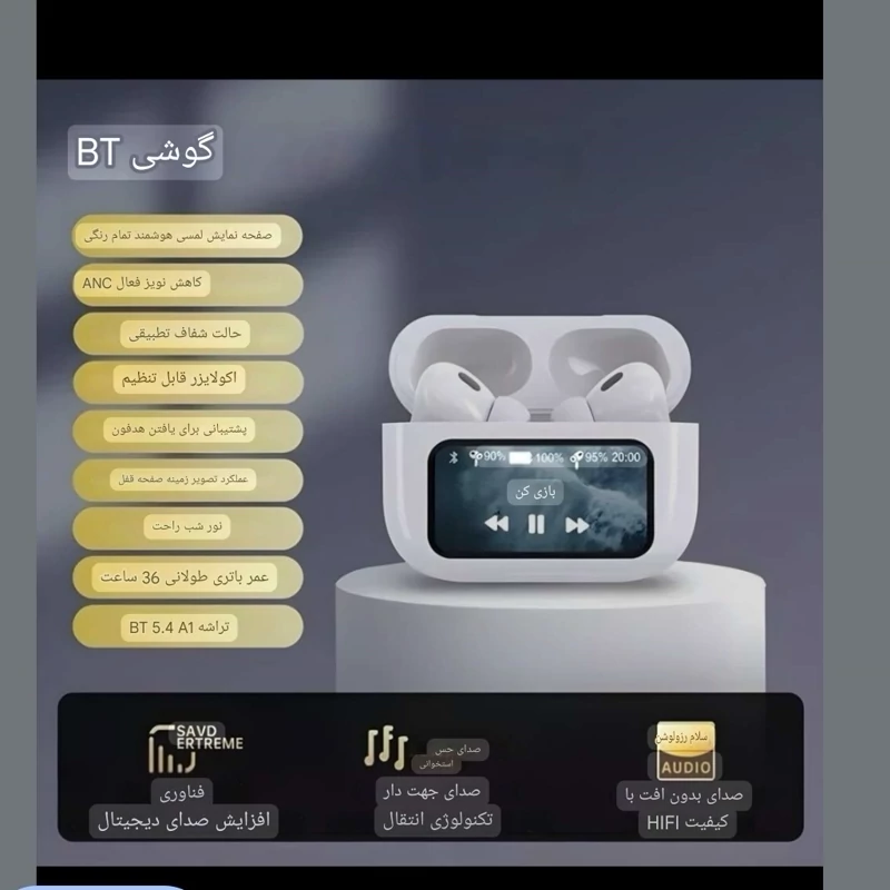 ایرپاد مانیتور دار ANC ENC A9PRO لمسی گیمینگ 5 ساعت موزیک مداوم نویزکنسلینگ