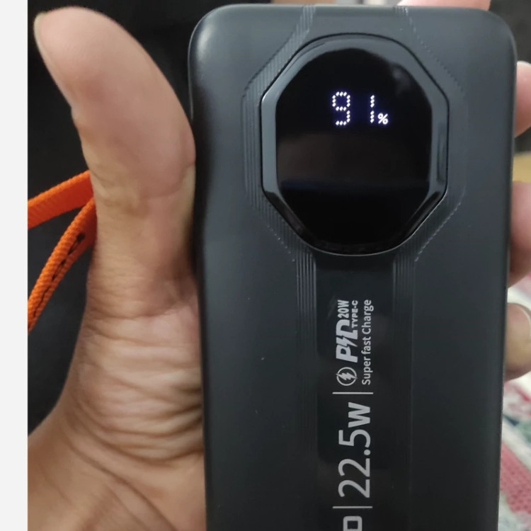 پاوربانک 30000 مدل موکسوم OMXMOصد درصد اوجینال مانیتور دارسوپر فست شارژ و کابل دار 22/5 وات