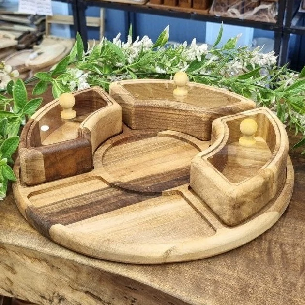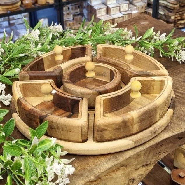 یک مجموعهی شیک و کامل برای سرو و نگهداری انواع خشکبار، قند و دمنوش. این جعبه از چوب گردوی طبیعی ساخته شده و شامل اجزای کاربردی زیر است: