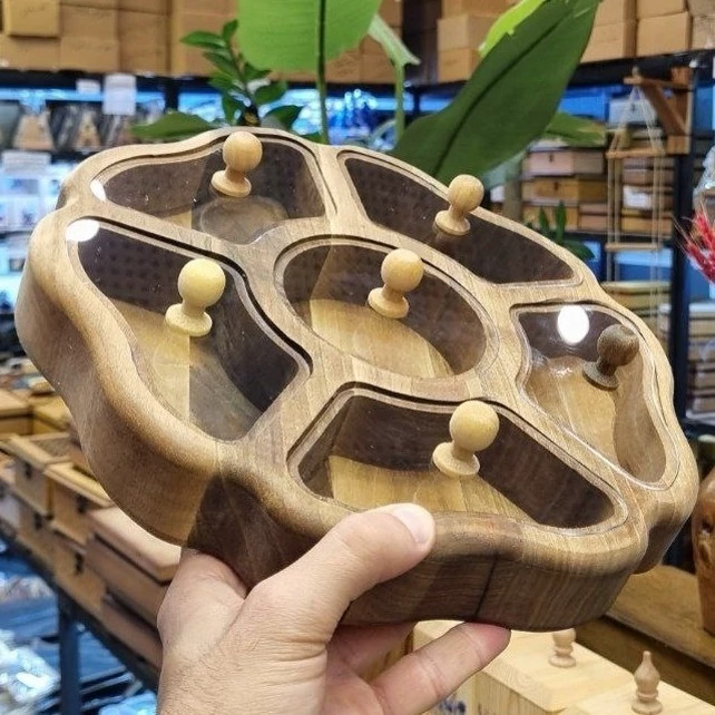 یک جعبه پذیرایی زیبا و شیک با طراحی الهامگرفته از گل، ساخته شده از چوب گردوی طبیعی. مناسب برای سرو انواع خشکبار، دمنوش و شکلات و جلوهای خاص و متفاوت به میز پذیرایی شما میبخشد.
