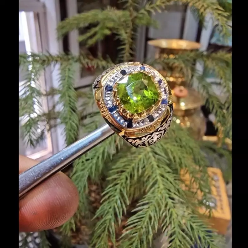 انگشترزبرجداصلی مخراج یاقوت کبوداصلی رکاب دستساز نقره عیار 925 ارسال رایگان