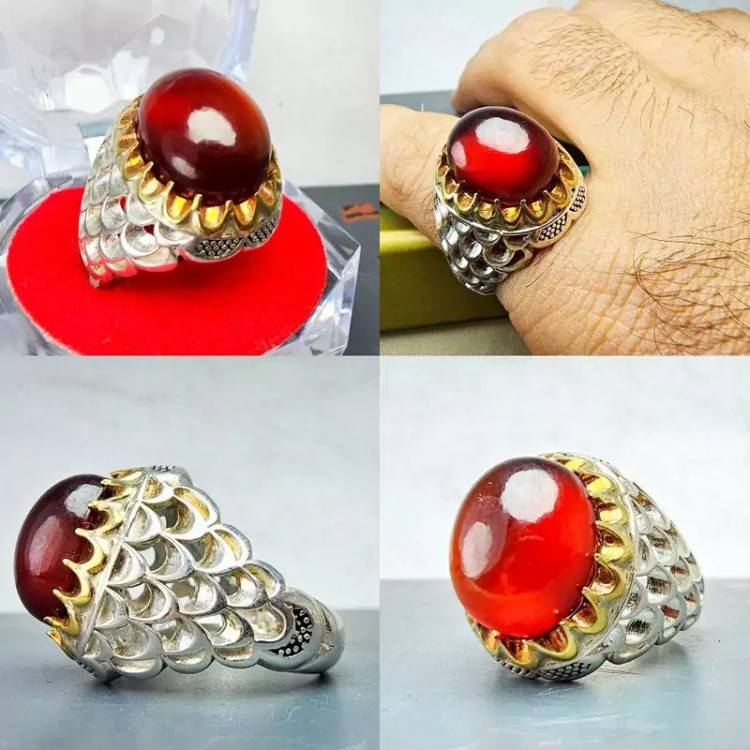 انگشتر مردانه گارنت اصلی رکاب نقره چنگی شبکه پولکی عیار۹۲۵ارسال رایگان سایزرایگان