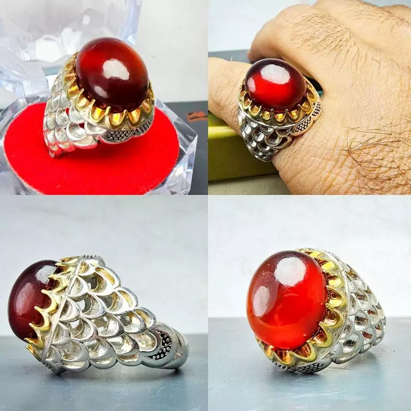 انگشتر مردانه گارنت دامله تراش اصلی رکاب نقره چنگی دستسازعیار925ارسال رایگان سایزرایگان