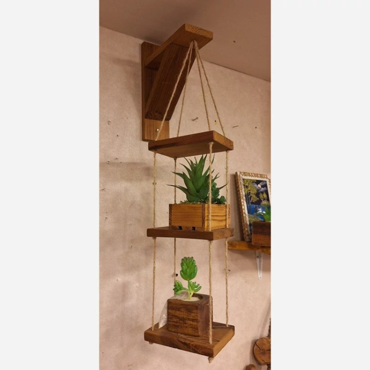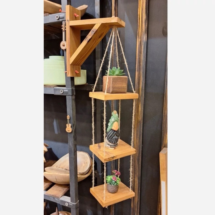 یک آویز دیواری زیبا و کاربردی با طراحی سه طبقه، ساخته شده از چوب ترمو و کنف با کیفیت بالا. مناسب برای نظمدهی به لوازم کوچک، تزئین دیوار یا قرار دادن گلدانها و وسایل دکوری، جلوهای طبیعی و مدرن به فضای شما میبخشد.