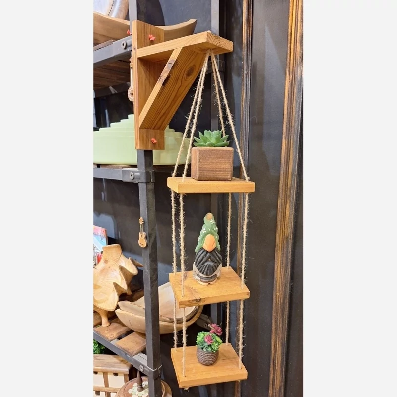 یک آویز دیواری زیبا و کاربردی با طراحی سه طبقه، ساخته شده از چوب ترمو و کنف با کیفیت بالا. مناسب برای نظمدهی به لوازم کوچک، تزئین دیوار یا قرار دادن گلدانها و وسایل دکوری، جلوهای طبیعی و مدرن به فضای شما میبخشد.