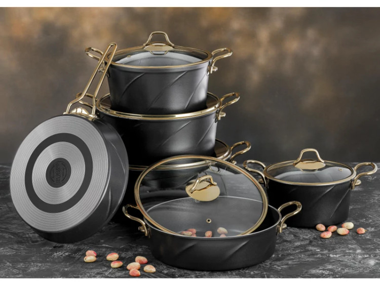 سرویس پخت و پز 11 پارچه اویز پلاس مدل ماریا دسته طلایی