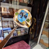 انگشتر توپازآبی اصلی مخراج زمردو برلیان اصلی رکاب نقره دستساز نقره عیار 925ارسال رایگان