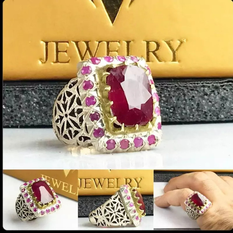 انگشتر مردانه یاقوت قرمز آفریقایی اصل رکاب نقره چنگی دستساز شبکه ومخراج یاقوت اصل عیار925ارسال رایگان سایزرایگان