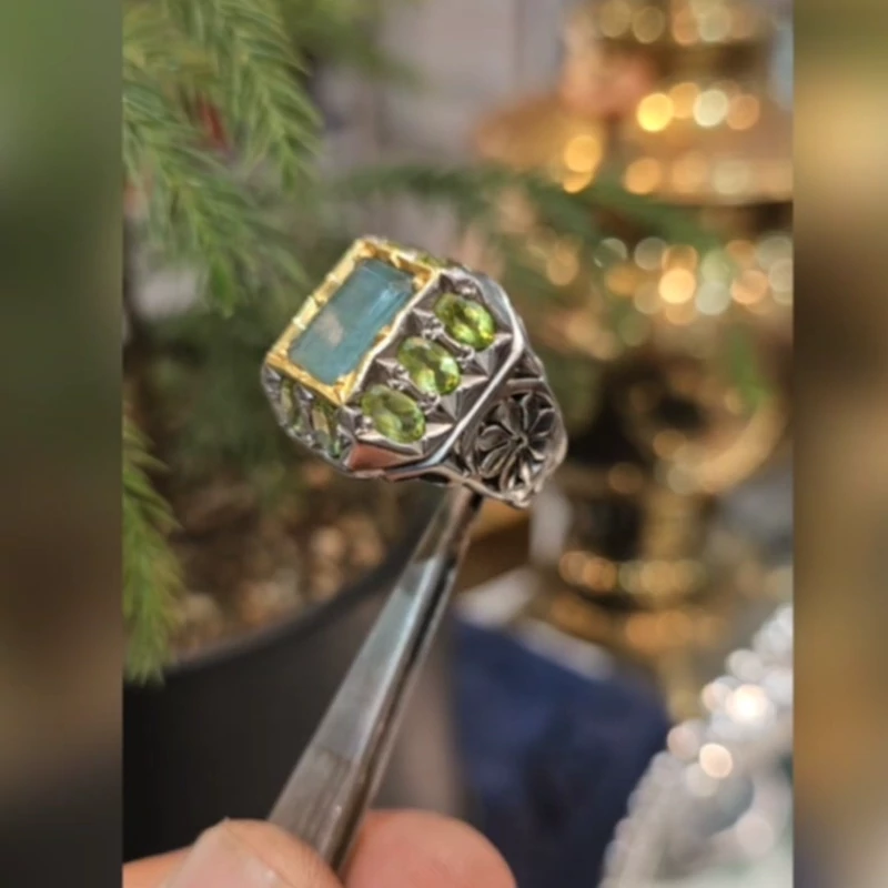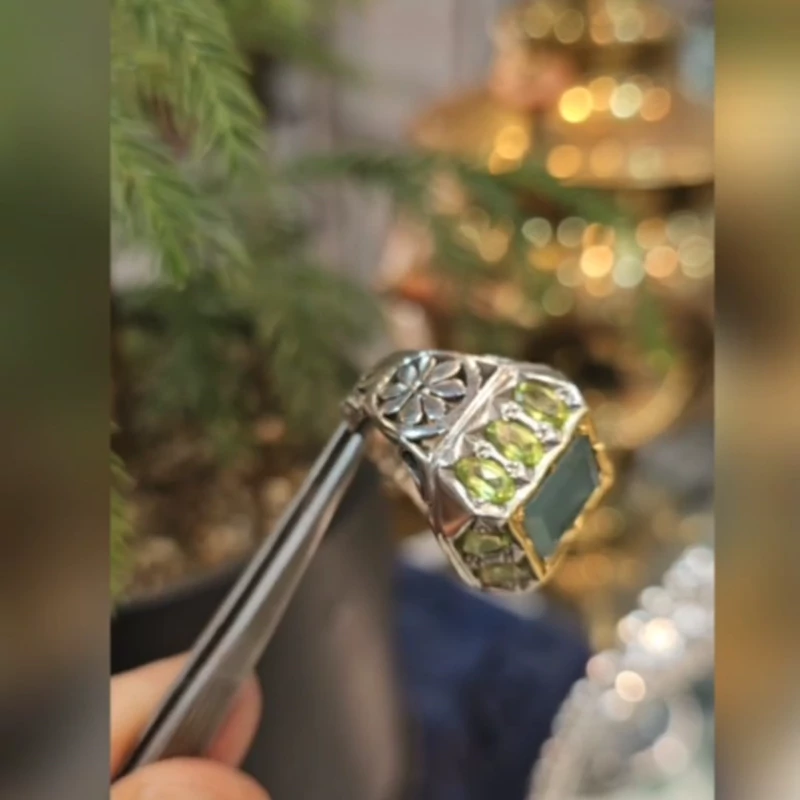 انگشتر زمرد زامبیا اصلی رکاب دست ساز ومخراج زبرجد اصلی نقره عیار 925ارسال رایگان