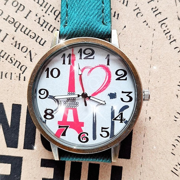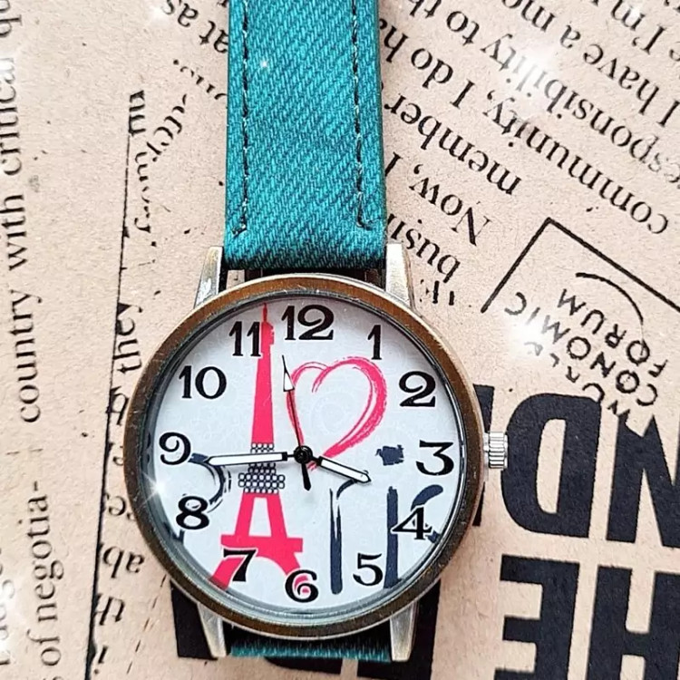 ساعت زنانه .بند چرمی سبز.قفل سگکی معمولی.بدنه فلزی مسی رنگ.ساعت زنانه .بند چرمی سبز.قفل سگکی معمولی