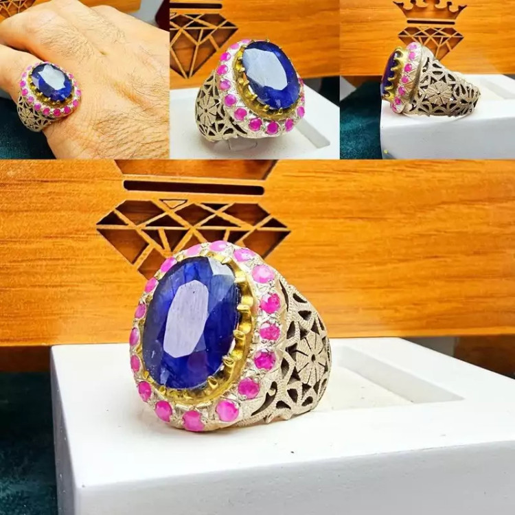 انگشتر یاقوت کبوداصلی مخراج یاقوت قرمزاصلی رکاب نقره دستساز شبکه زنی نقره عیار 925 ارسال رایگان