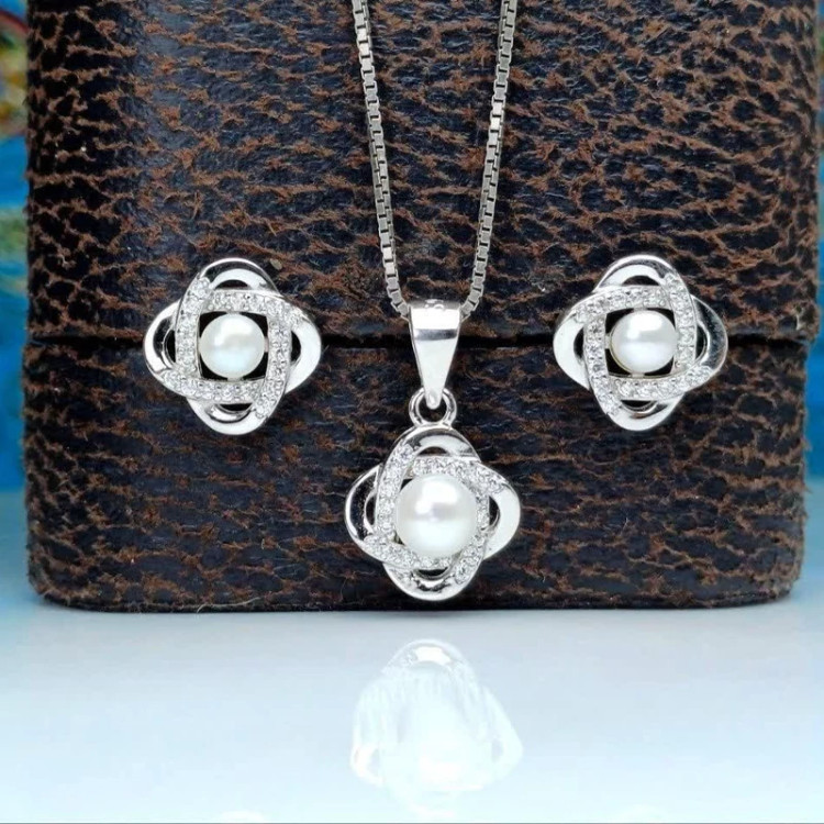 نیم ست مروارید پرورشی نقره عیار 925ارسال رایگان