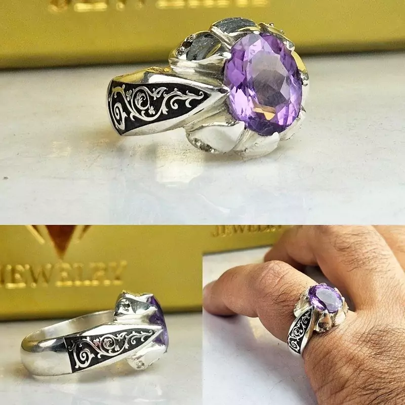انگشتر مردانه آماتیس اصلی رکاب نقره چنگی دستساز عیار925ارسال رایگان