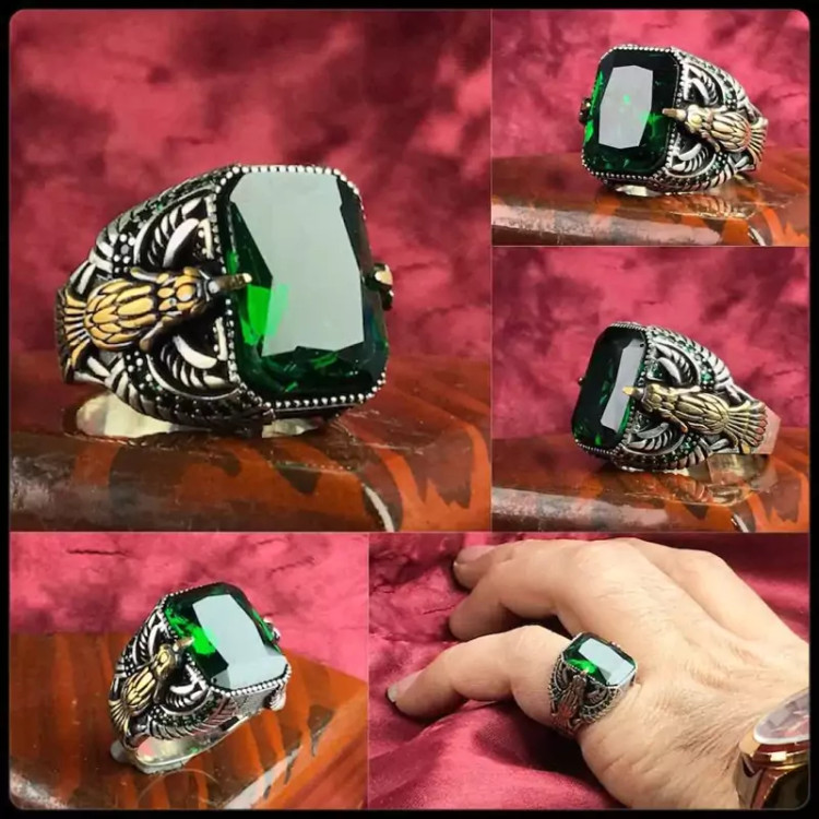 انگشترزیبای اسپرت نگین سبز رکاب قلم زنی عیار نقره 925ارسال رایگان