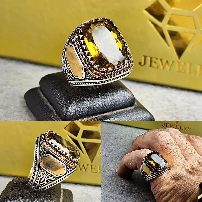 انگشتر سیترین طلایی اصلی رکاب مخراجی شده عیار نقره 925ارسال رایگان