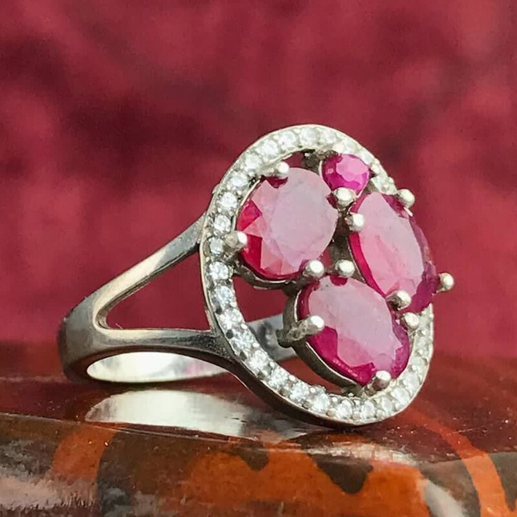 انگشتر چهارنگینه یاقوت قرمز اصلی فوق العاده شیک وجواهری عیار نقره 925ارسال رایگان