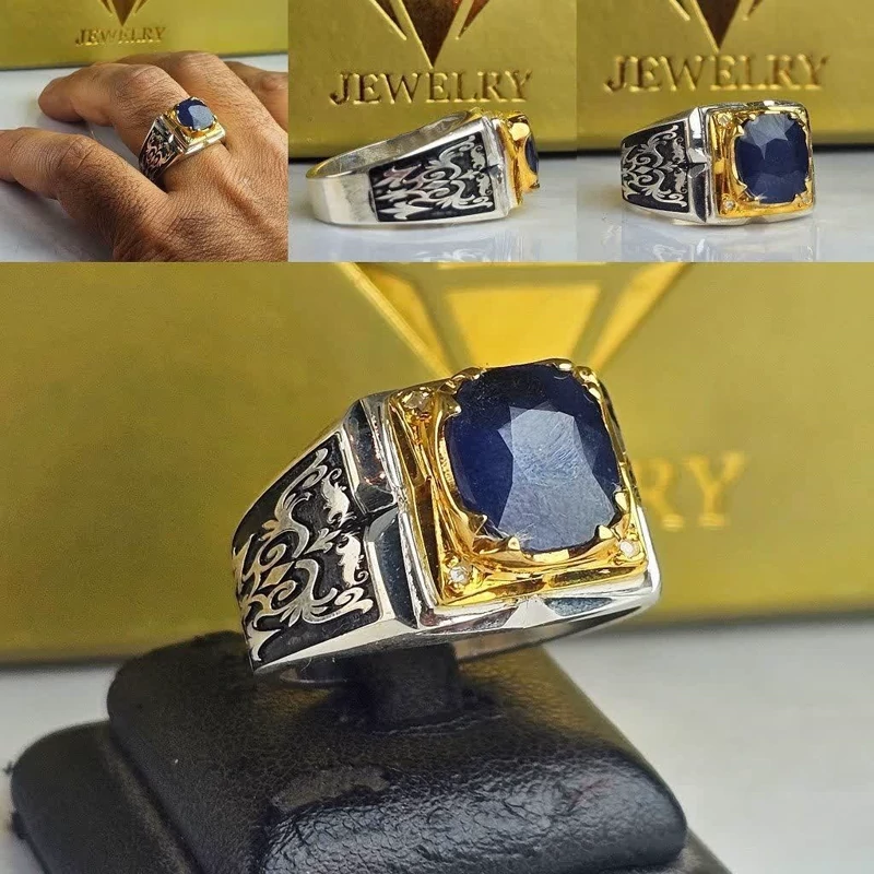 انگشتر یاقوت کبوداصلی مخراج برلیان اصلی رکاب دستساز نقره عیار 925 ارسال رایگان
