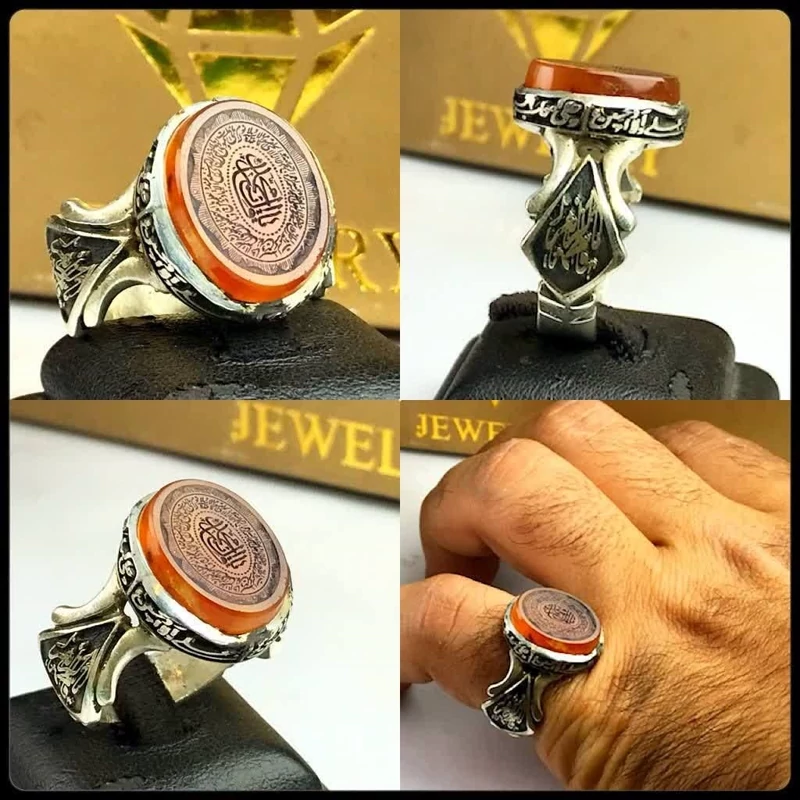 انگشتر نقره عقیق یمنی رکاب دست ساز حکاکی زیبای آیت الکرسی عیار نقره 925 ارسال رایگان