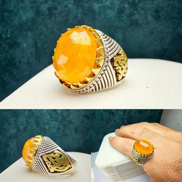انگشتر یاقوت زرد اصلی رکاب نقره چنگ برنجی نقره عیار 925 ارسال رایگان