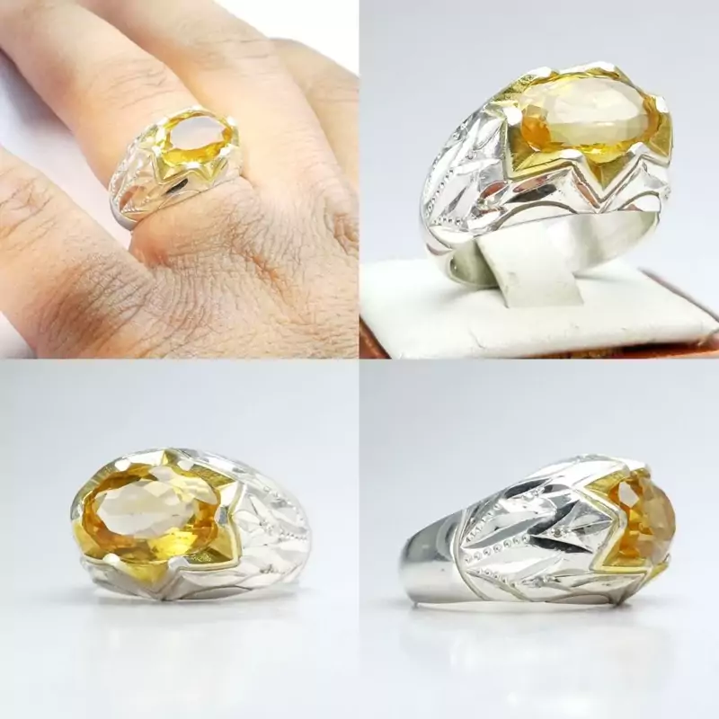 انگشترسیترین طلایی اصلی رکاب نقره دستساز مخراج برلیان اصلی نقره عیار 925ارسال رایگان