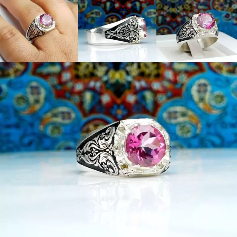 انگشترتوپازصورتی اصلی مخراج بلریان اصلی رکاب نقره دستساز نقره عیار 925ارسال رایگان