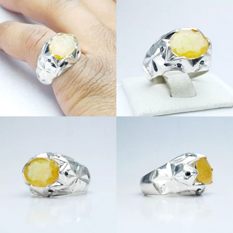 انگشتر یاقوت زرداصلی رکاب نقره دست وماشین مخراج یاقوت کبوداصلی نقره عیار 925ارسال رایگان