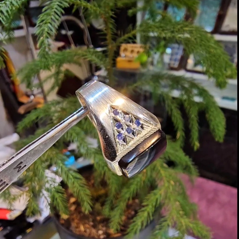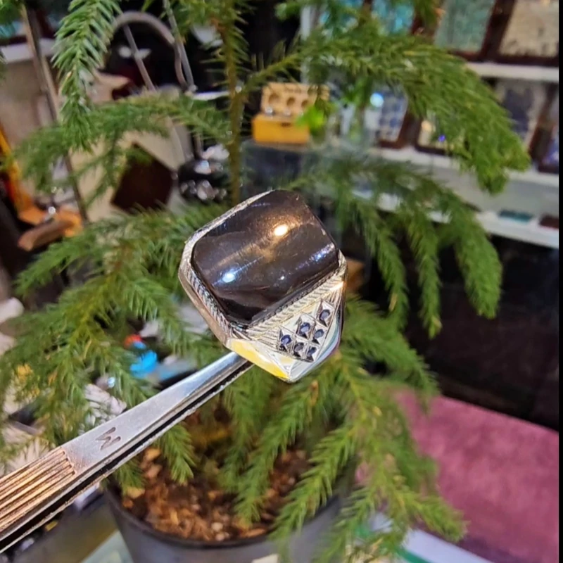 انگشترعقیق یمنی یمن مشکی اصلی مخراج یاقوت کبوداصلی رکاب نقره دستساز نقره عیار 925ارسال رایگان
