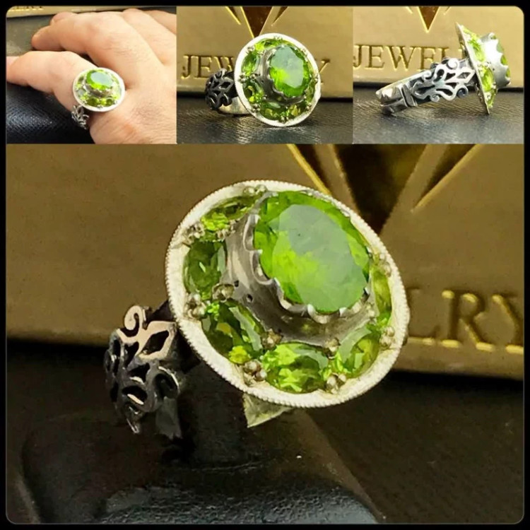 انگشتر 9نگینه زبرجد اصلی رکاب دست ساز صفوی نقره عیار 925ارسال رایگان