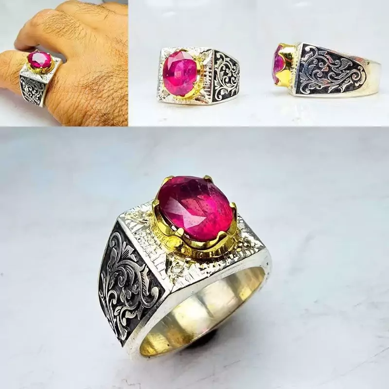 انگشتر یاقوت سرخ قرمز اصلی مخراج برلیان اصلی رکاب نقره دستساز نقره عیار 925 ارسال رایگان
