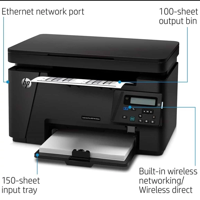 پرینتر چندکاره لیزری hp M125nw با چاپ تک رنگ از محصولات شرکت محبوب و مطرح hp ( اچ پی ) است. این دستگاه با ظرفیت سینی ورودی ۱۵۰ برگ A4، از قابلیتهای پرینت، اسکن و کپی برخوردار میباشد.