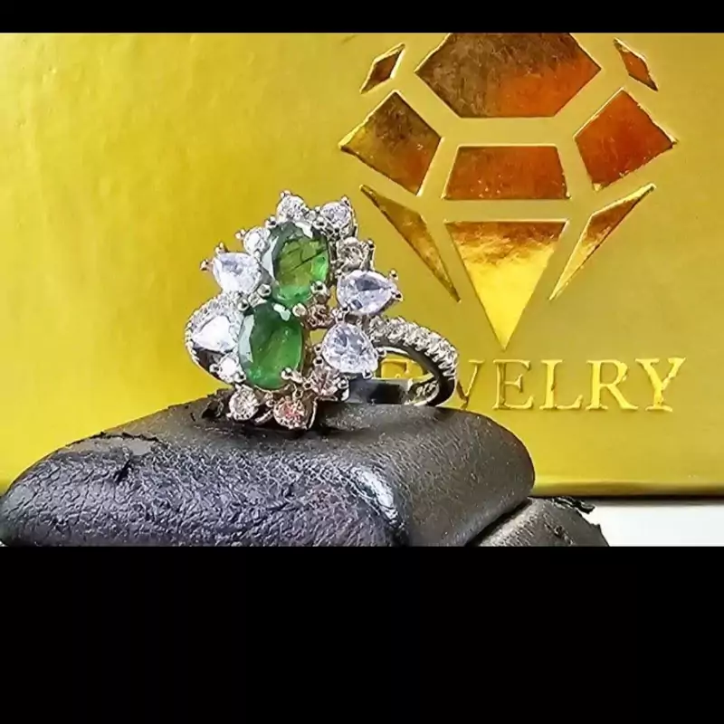 انگشتر دونگینه زمرد اصلی انگشتر نقره زنانه نقره عیار 925ارسال رایگان
