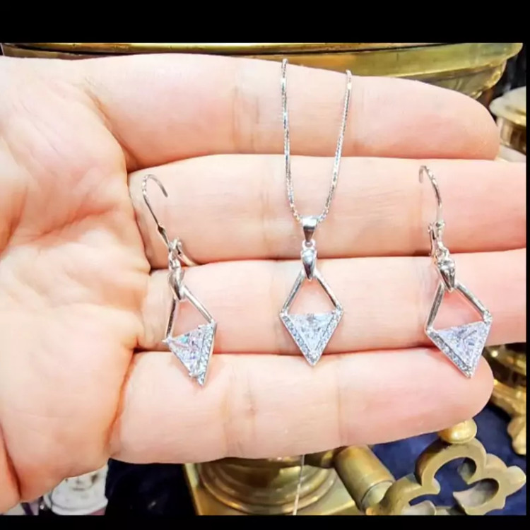 نیمست جواهری مثلثی نیم ست نقره زنانه نقره عیار 925 ارسال رایگان