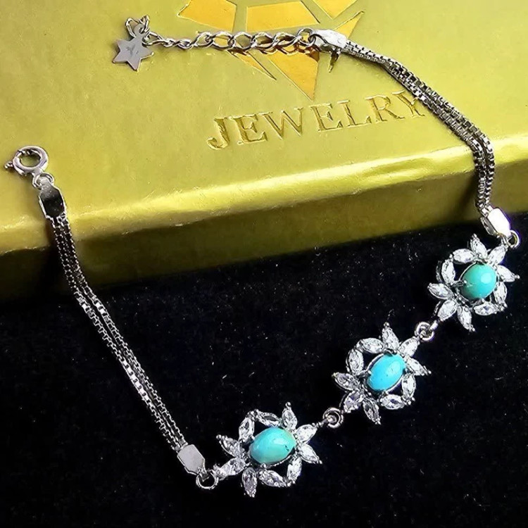 دستبند سه نگین فیروزه نیشابور اصلی نقره عیار 925 ارسال رایگان