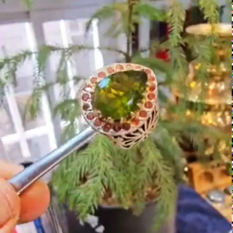 انگشتر زبرجداشکی اصلی مخراج گارنت اصلی رکاب نقره دستساز نقره عیار 925 ارسال رایگان