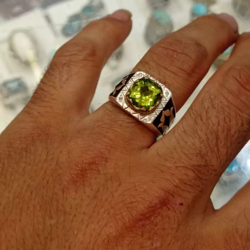 انگشترزبرجداصلی مخراج برلیان اصلی رکاب نقره دستساز نقره عیار 925 ارسال رایگان