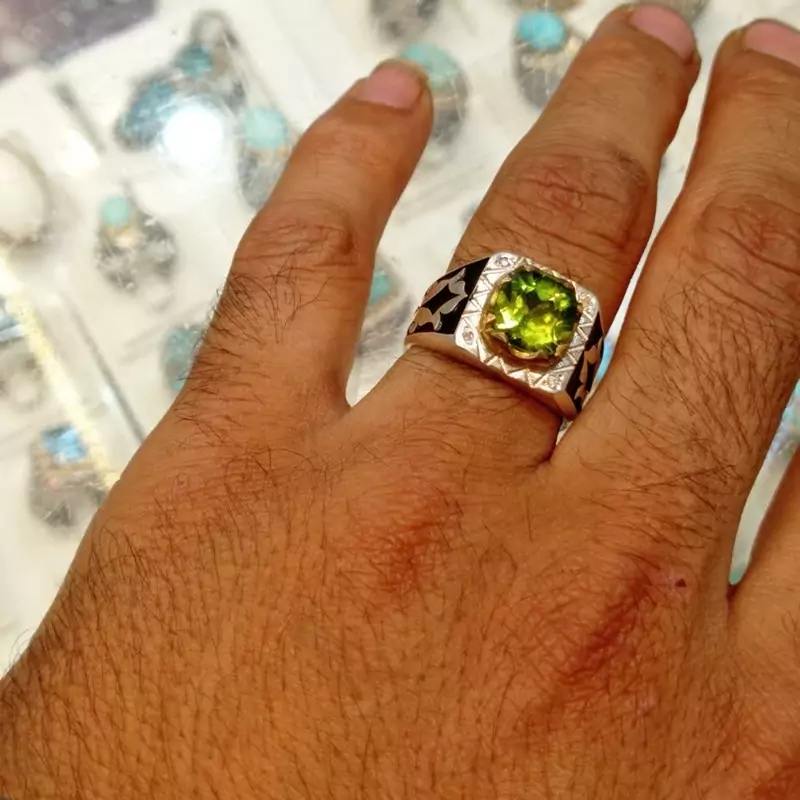 انگشترزبرجداصلی مخراج برلیان اصلی رکاب نقره دستساز نقره عیار 925 ارسال رایگان