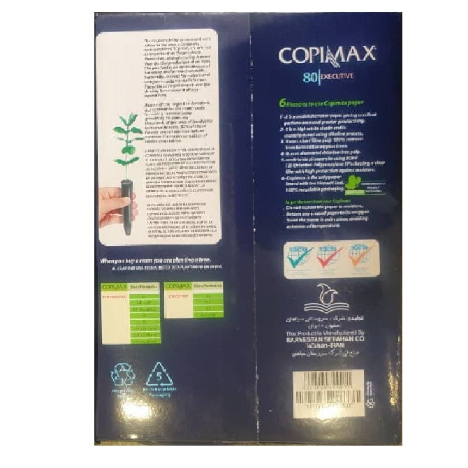 کاغذ a4 کپی مکس اصفهان جزو معروفترین برندهای کپی مکس در ایران که کیفیت فوق العاده خوب در کنار قیمت مناسب دارد برای پرینتر های خانگی حساس بسیار مناسب می باشد