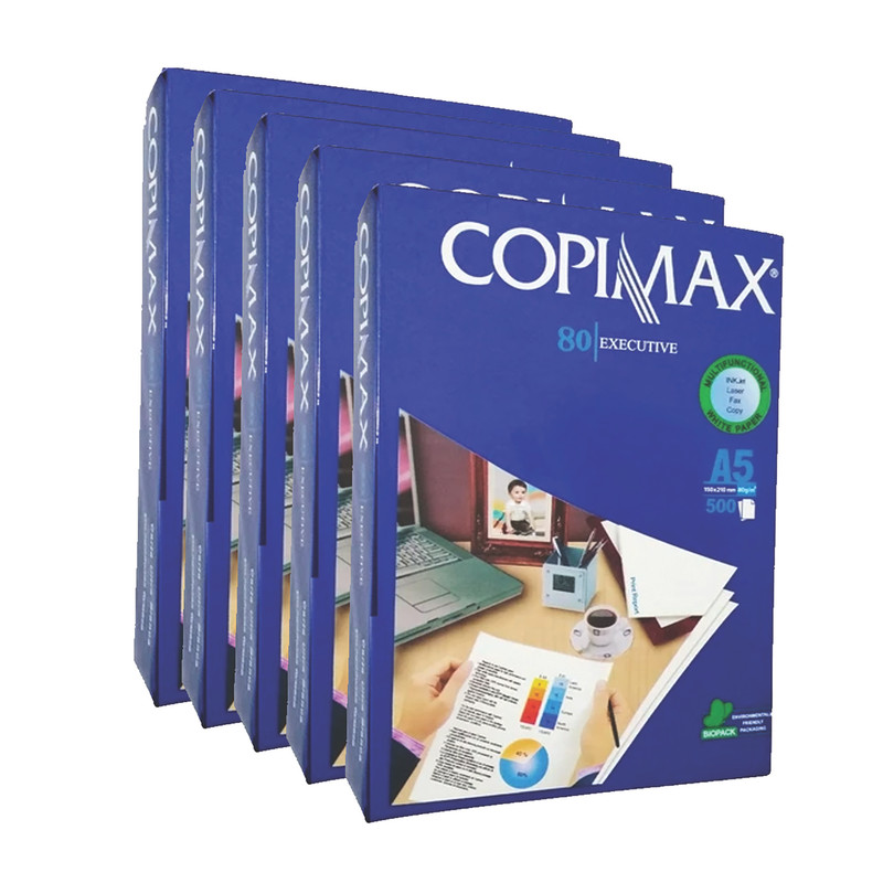 محتوی 5 بسته کاغذ A5 و با بسته بندی قابل بازیافت و وزن مجموع 5 بسته 6240 گرم - تهیه شده از چوب درخت اکالیپتوس