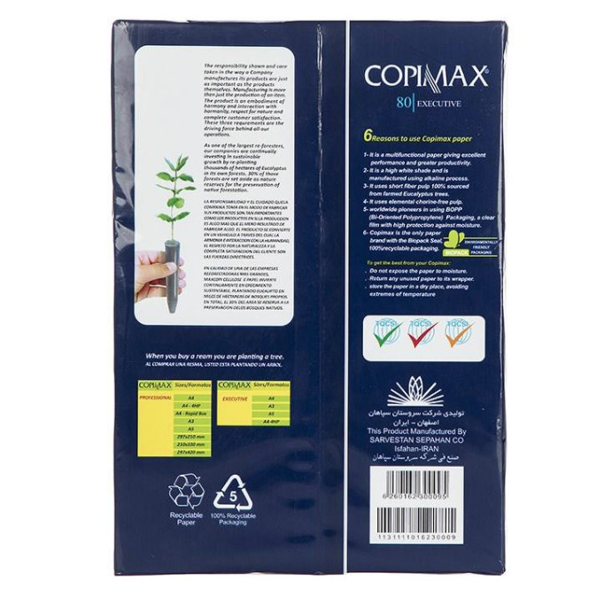 ساختهشده با فرایند آلکالاین و با استفاده از فیبر درخت اکالیپتوس بسته بندی این محصول به صورت سلفون چسب دار می باشد.