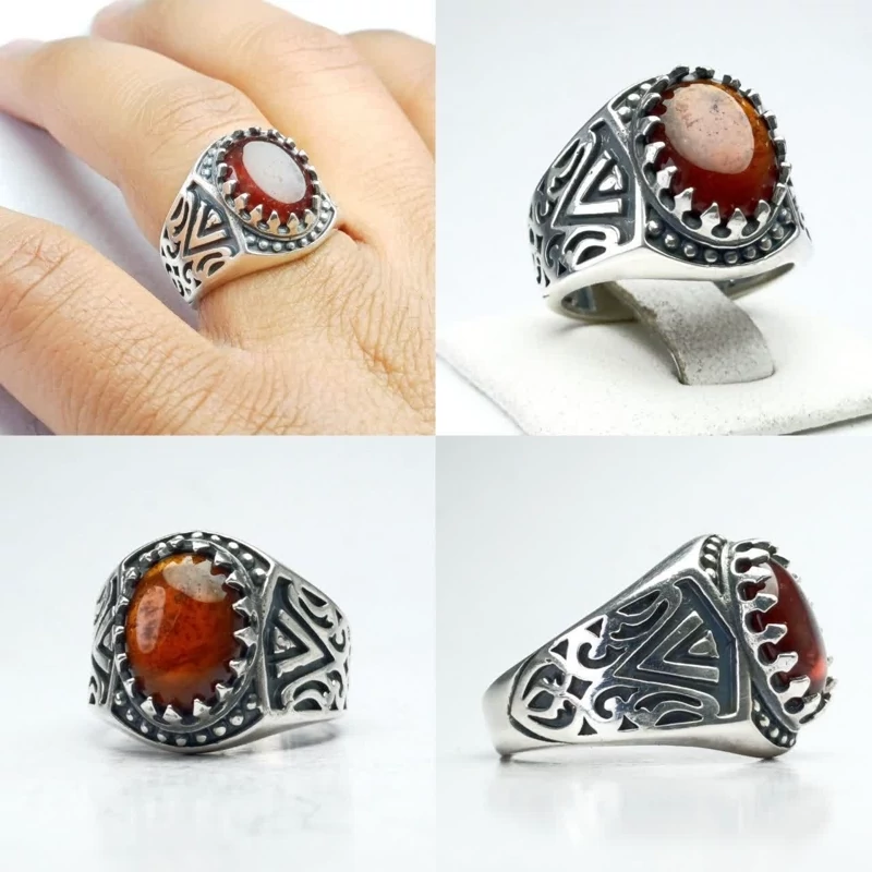 انگشتر گارنت اصلی رکاب نقره چنگی طرح قلم نقره عیار 925ارسال رایگان