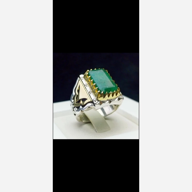 انگشتر زمردزامبیا اصلی رکاب نقره دستساز مخراج برلیان اصل انگشتر نقره مردانه نقره عیار 925ارسال رایگان