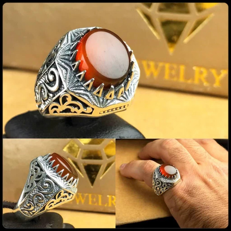 انگشتر عقیق یمن اصلی رکاب چنگی شبکه عیار نقره 925ارسال رایگان