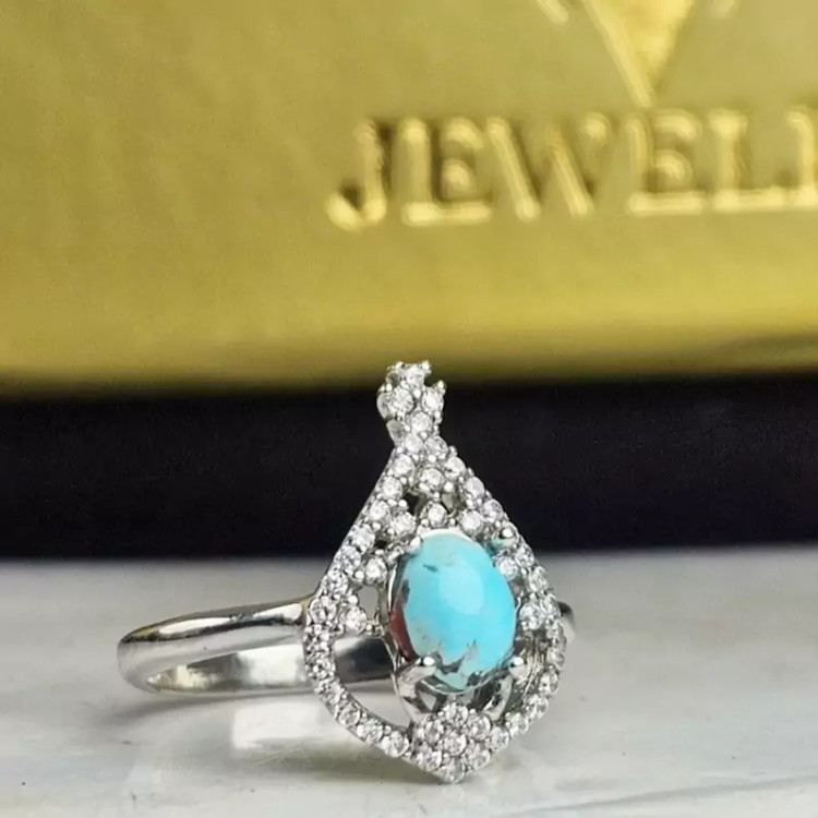 انگشتر فیروزه نیشابوری اصل انگشتر نقره زنانه نقره عیار 925ارسال رایگان