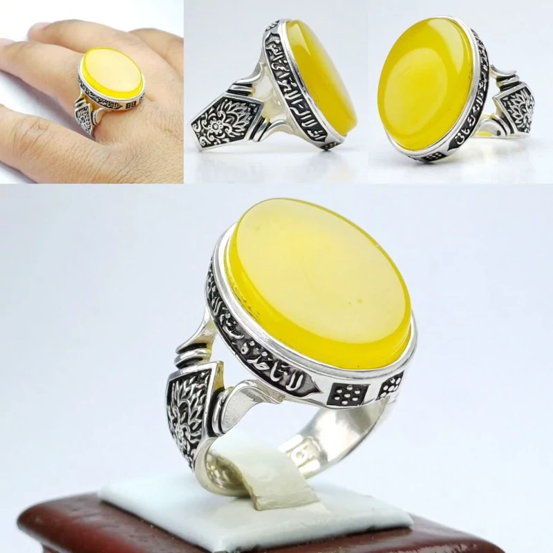 انگشتر عقیق زرد شرف الشمس اصلی رکاب نقره صفوی نقره عیار 925ارسال رایگان